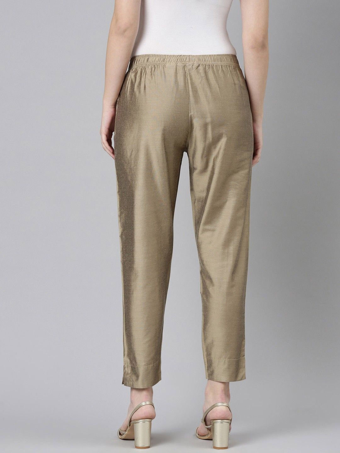 Women Mid-Rise Shimmer Straight Fit Trousers